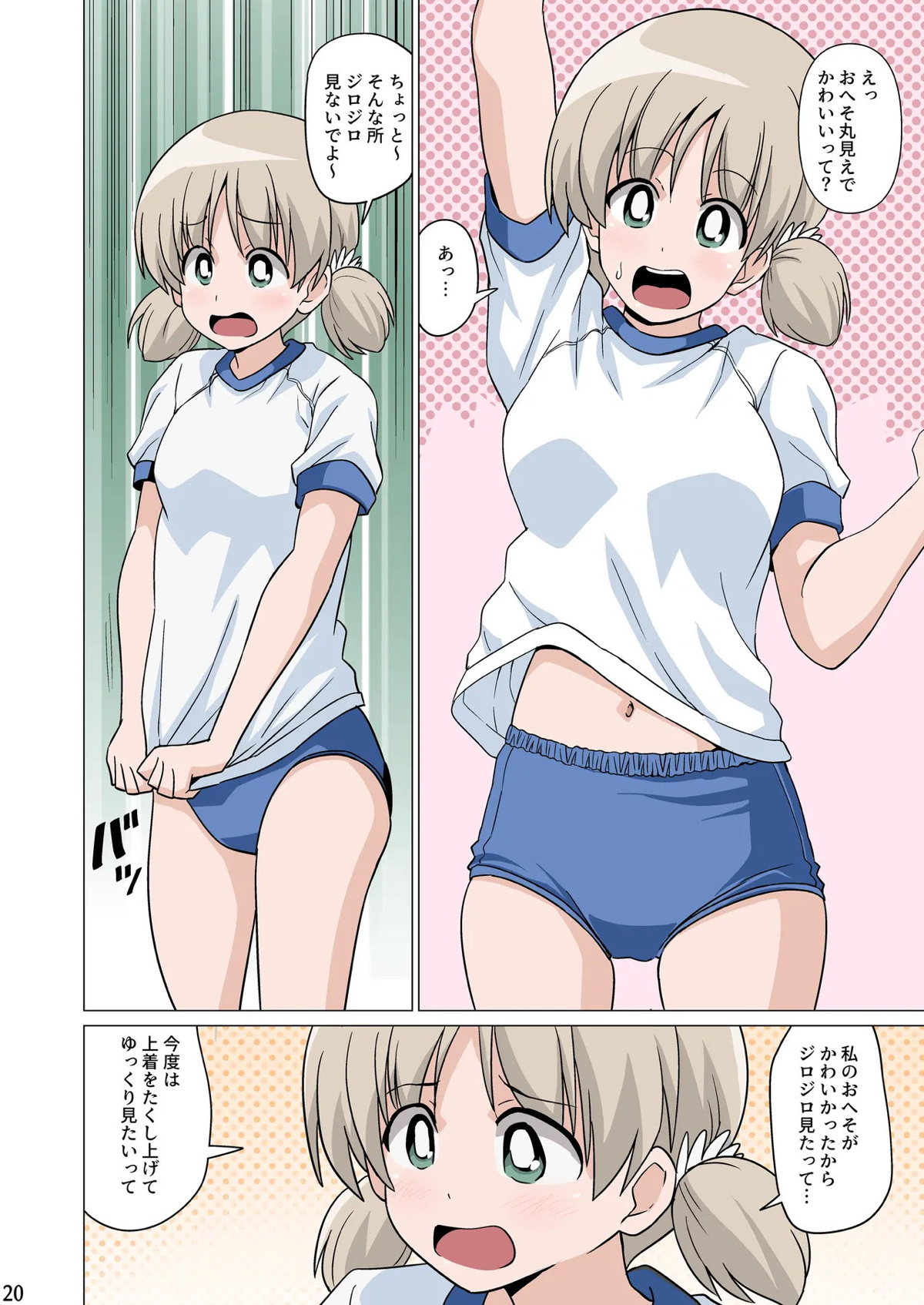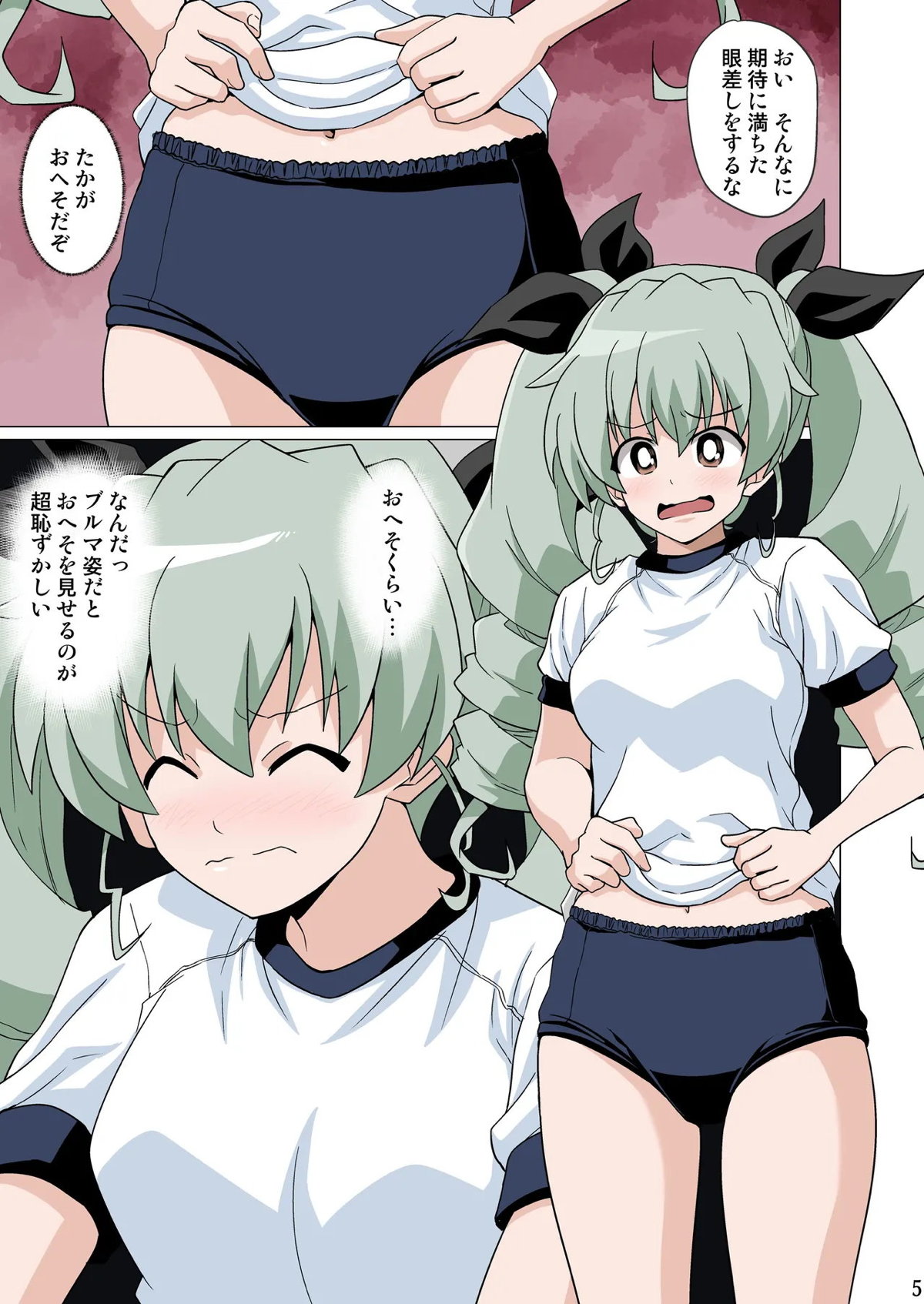 ガールズ&パンツァー 恥ずかしがりながらブルマ姿でおへそを見せてくれる