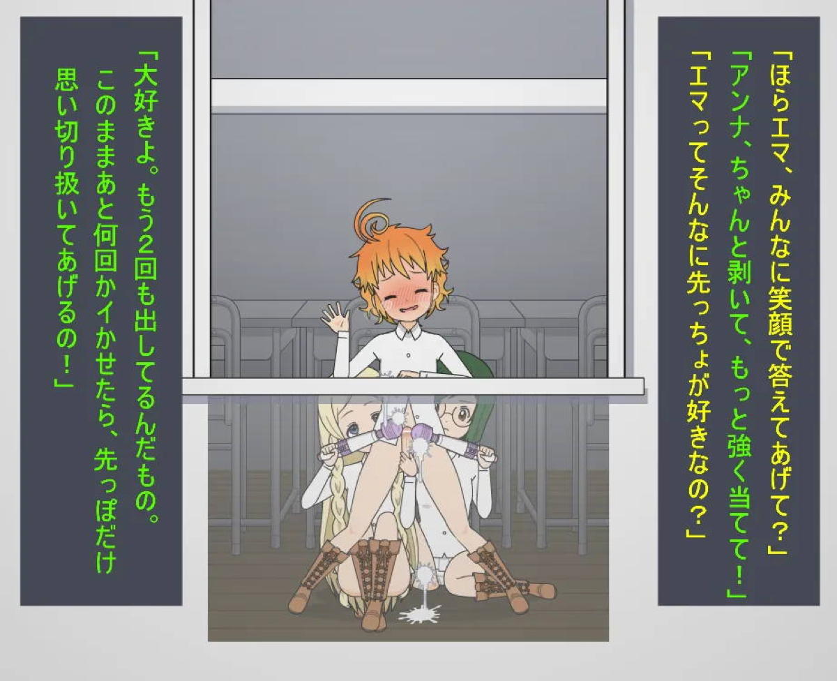 約束のネバーランド 拘束されたエマが玩具責めされてしまう…