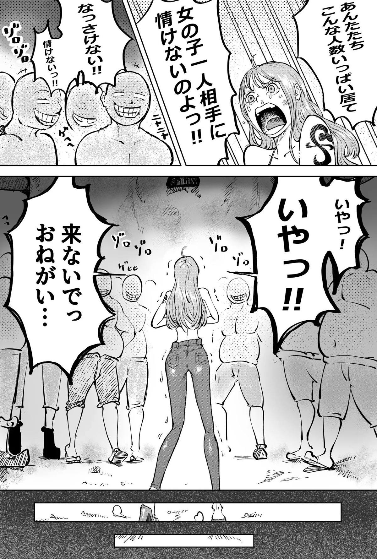 ONE PIECE 海で知らない男と2人きりになったロビンがメスの身体にされる話 前編